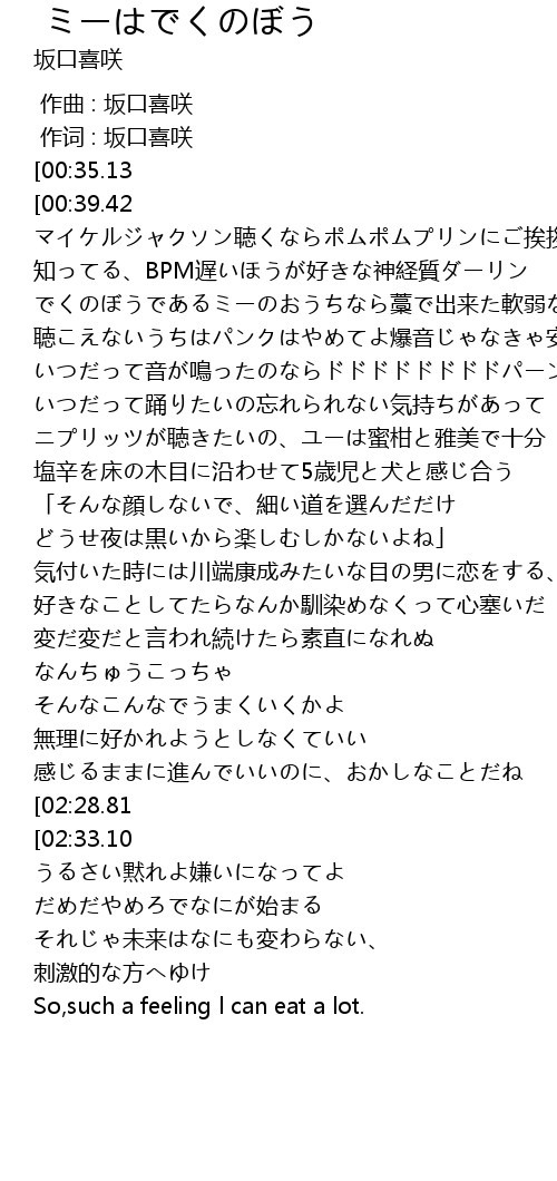 | [00:01.00] | 作词 : 坂口喜咲 |