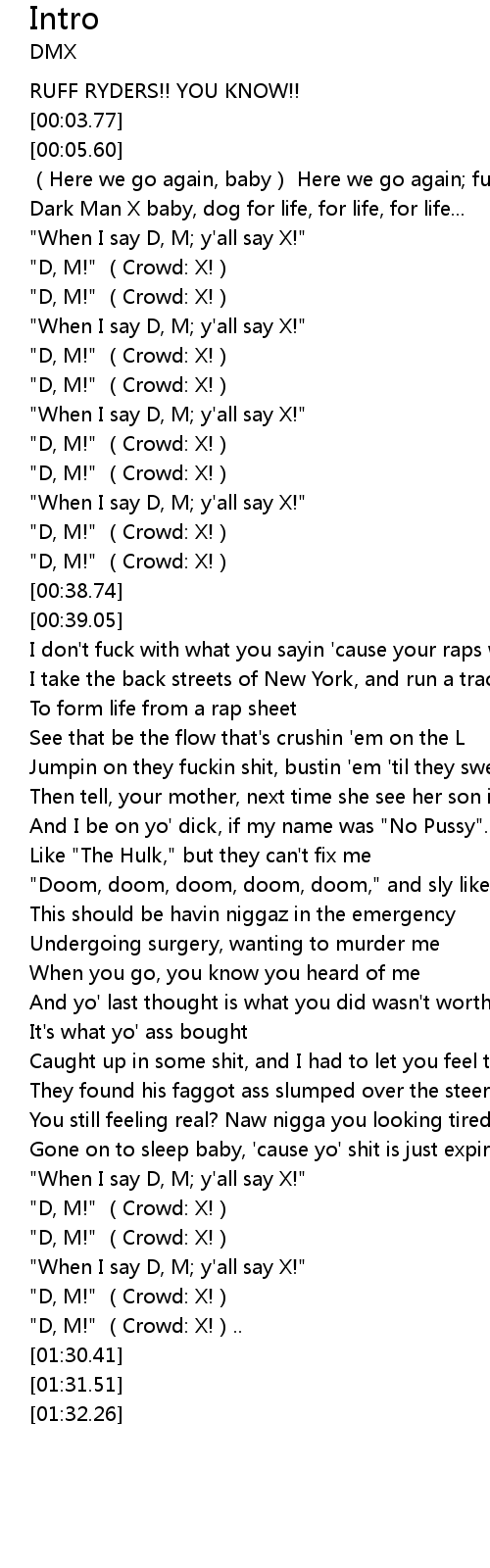 | [00:22.93] | "When I say D, M; y'all say X!" |