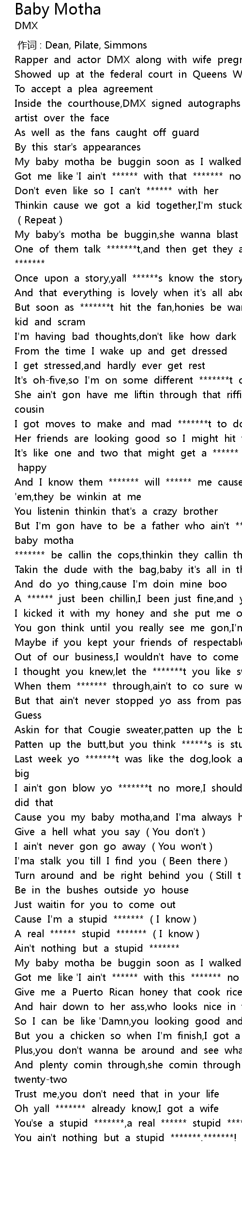 | [00:40.69] | My baby's motha be buggin,she wanna blast stick ******* |