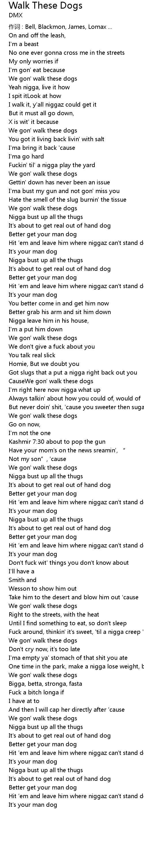 | Hit 'em and leave him where niggaz can't stand dog | |