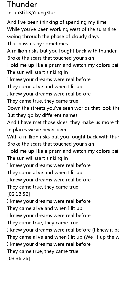 | [03:23.32] | They came alive and when I lit up (We lit up the whole sky) |