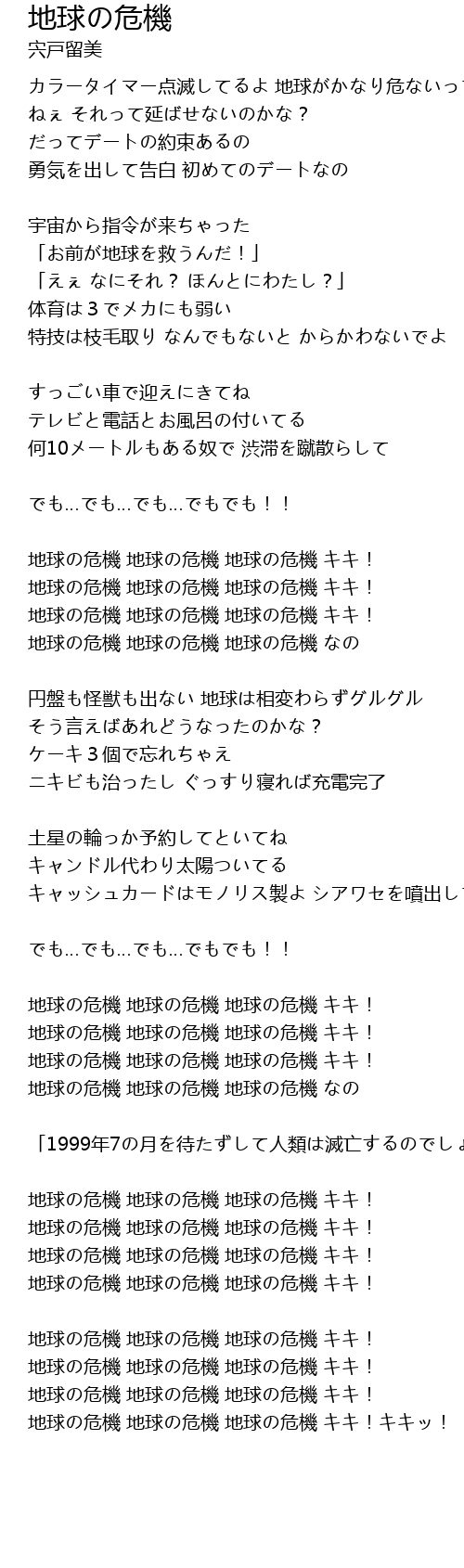 | 地球の危機 地球の危機 地球の危機 キキ! | |