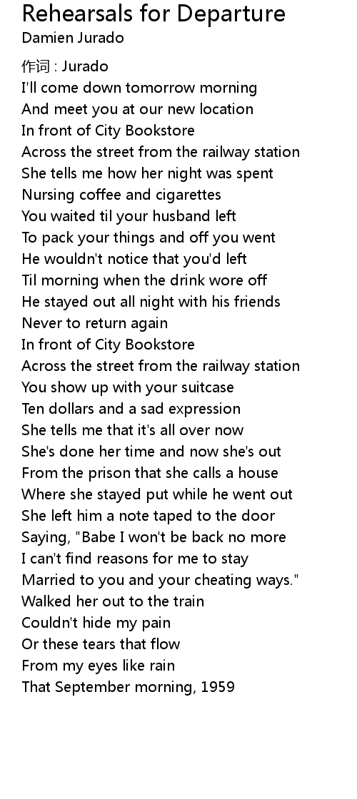 | Song | Rehearsals for Departure |