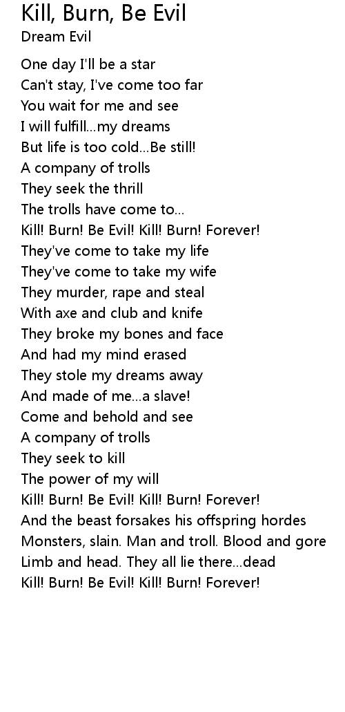 Kill! Burn! Be Evil! Kill! Burn! Forever!