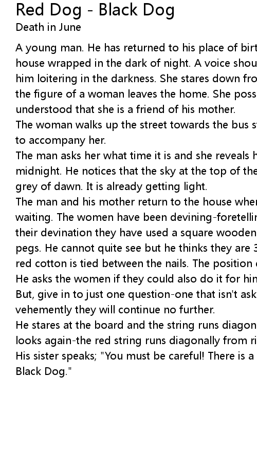 His sister speaks; "You must be careful! There is a Red Dog. And, there is a Black Dog."