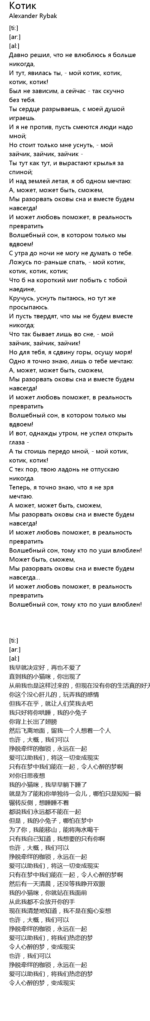 Ложусь по-раньше спать, - мой котик, котик, котик, котик; |