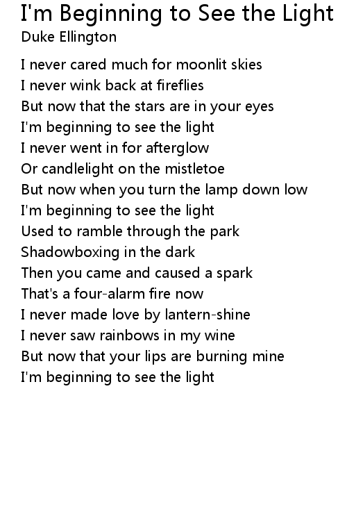 I'm beginning to see the light |