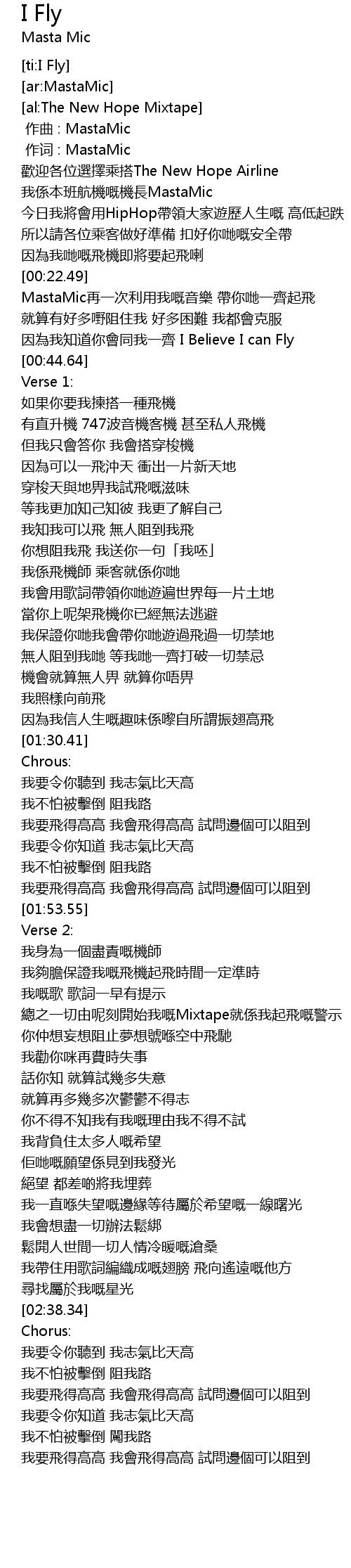 | [00:26.41] | MastaMic再一次利用我嘅音樂 帶你哋一齊起飛 |