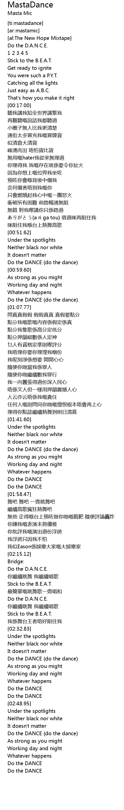 | [02:39.32] | Do the DANCE (do the dance) |
