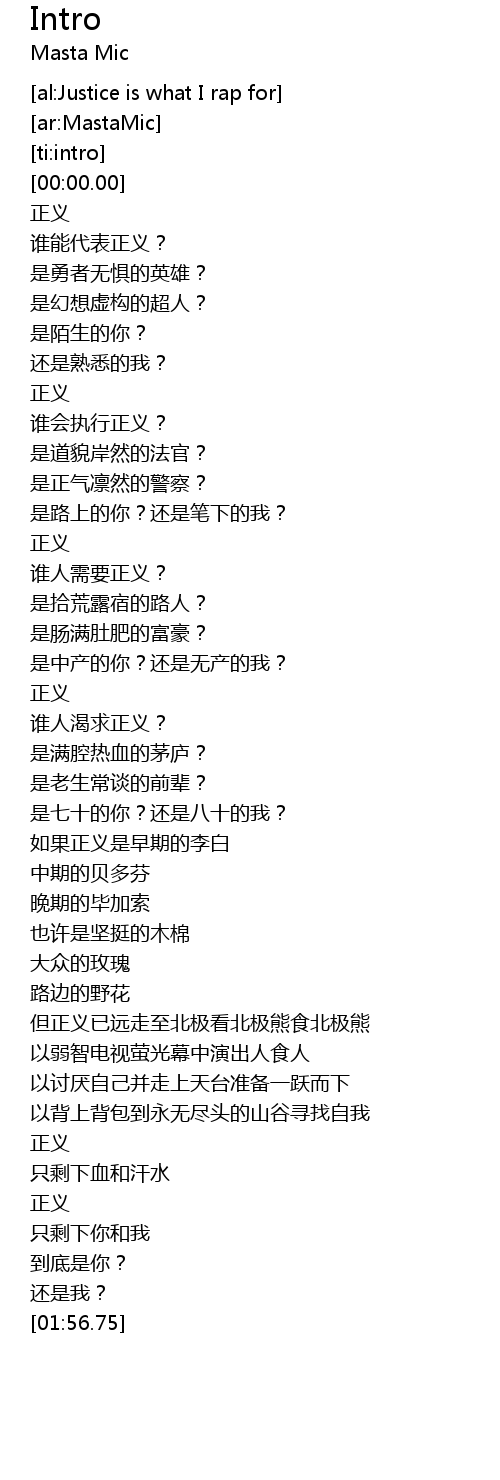 | [00:58.56] | 正义 |
