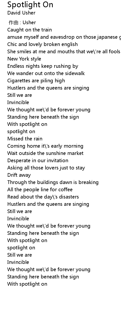| [02:09.56] | With spotlight on |