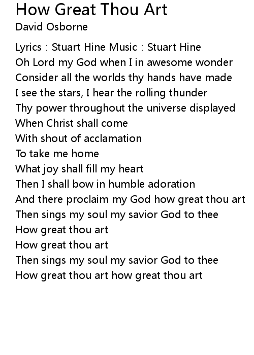 | How great thou art how great thou art |