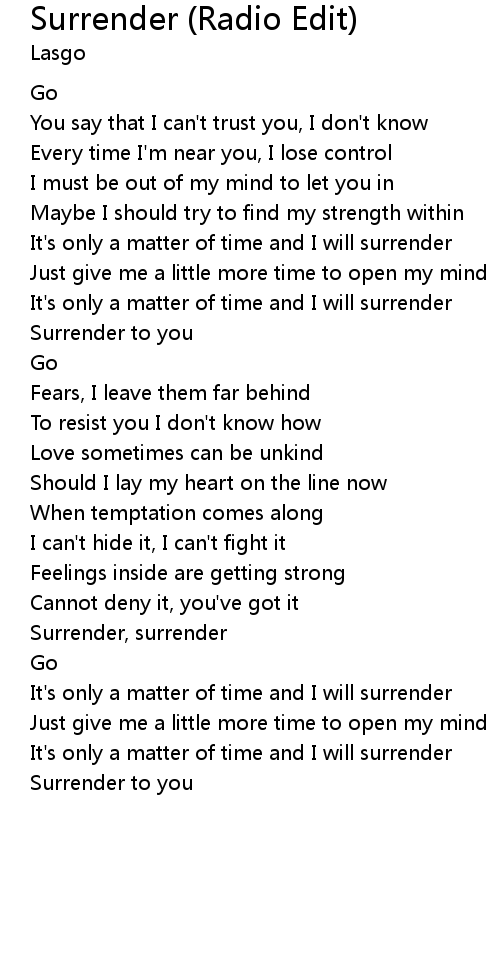 | It's only a matter of time and I will surrender | |
