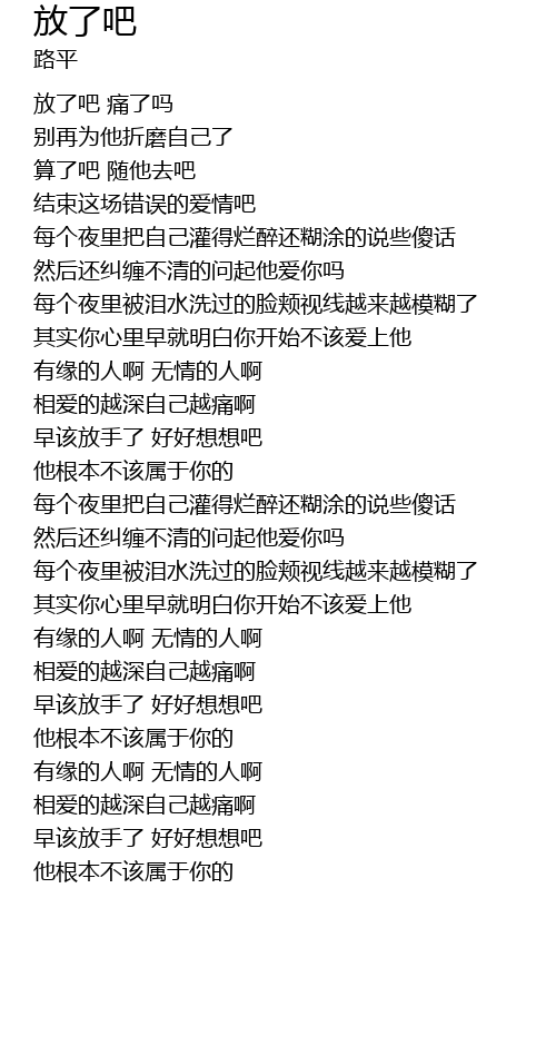 | [01:43] | 早该放手了 好好想想吧 |