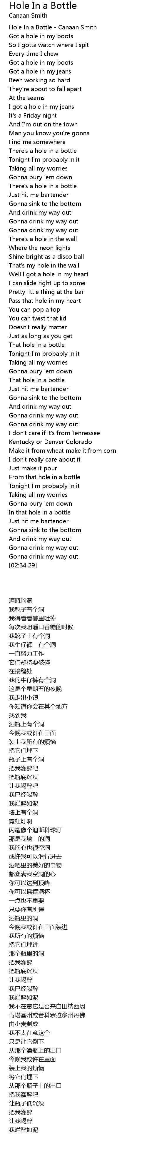 Hole In a Bottle - Canaan Smith |