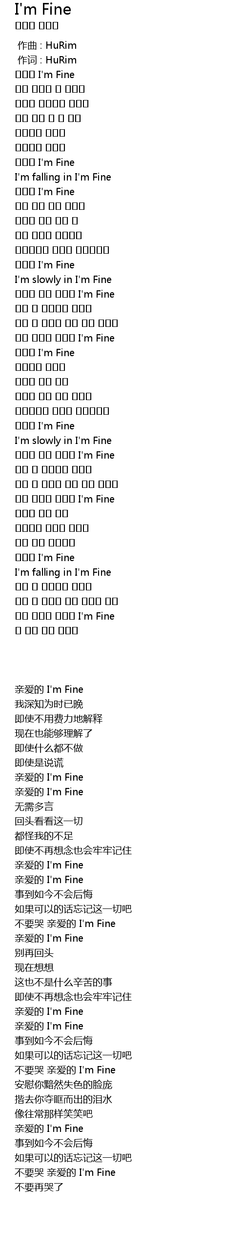 | [03:20.40] | 울지 말아요 그대여 I'm Fine |