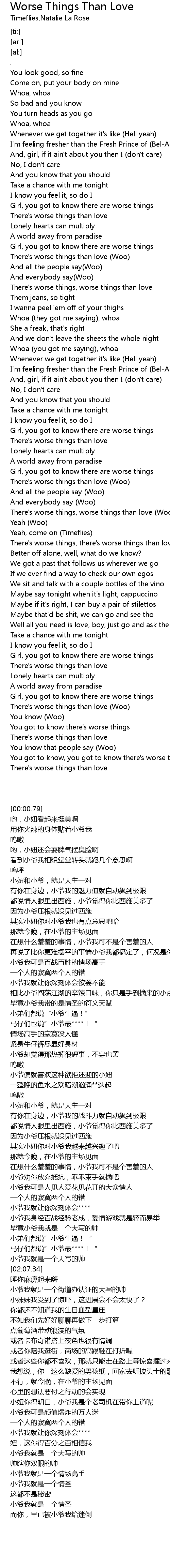 There's worse things, there's worse things than love (Natalie La Rose) |