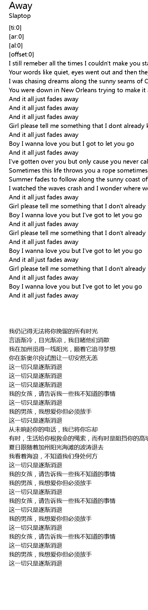 | [00:29.45] | Your words like quiet, eyes went out and then they fade away |