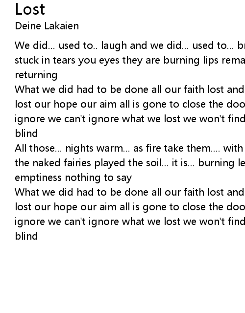What we did had to be done all our faith lost and gone what we did we never won lost our hope our aim all is gone to close the door is never easy but we can't ignore we can't ignore what we lost we won't find see those eyes they turned blind |