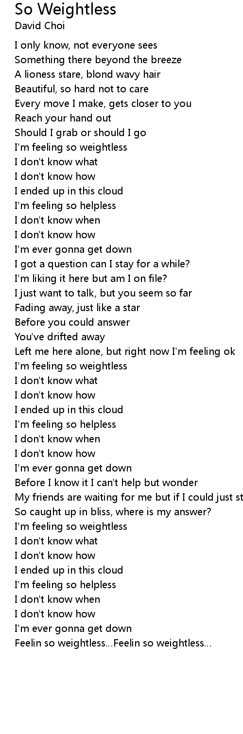 | I' m feeling so weightless | |