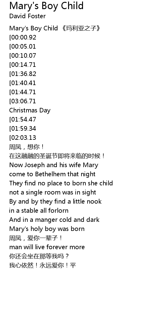 | [00:00.00] | Mary's Boy Child 《玛利亚之子》 |