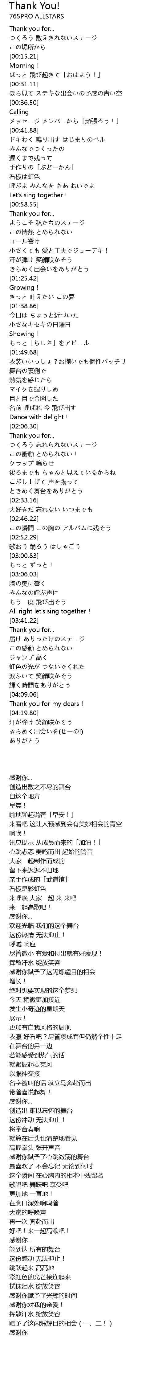 | [00:37.72] | メッセージ メンバーから「頑張ろう!」 |