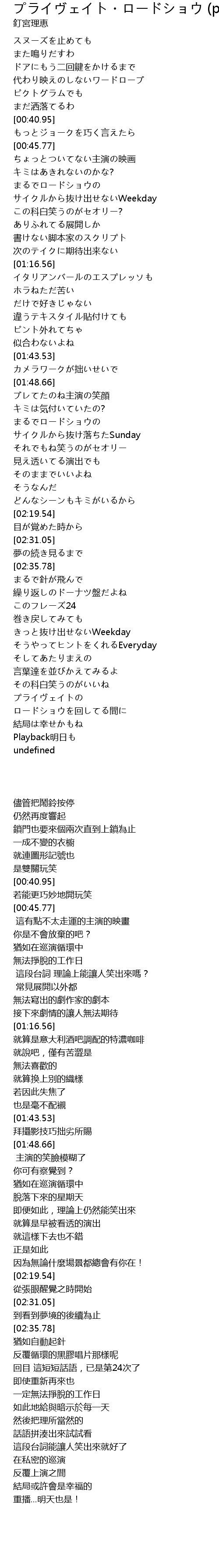| [03:19.73] | プライヴェイトの |