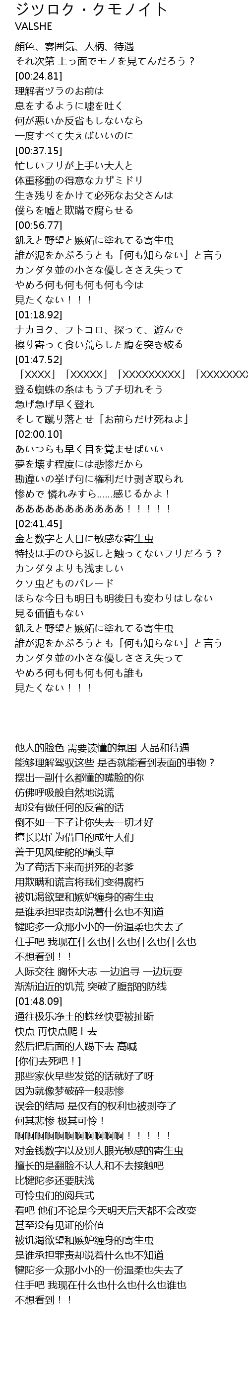 | [01:54.81] | そして蹴り落とせ「お前らだけ死ねよ」 |