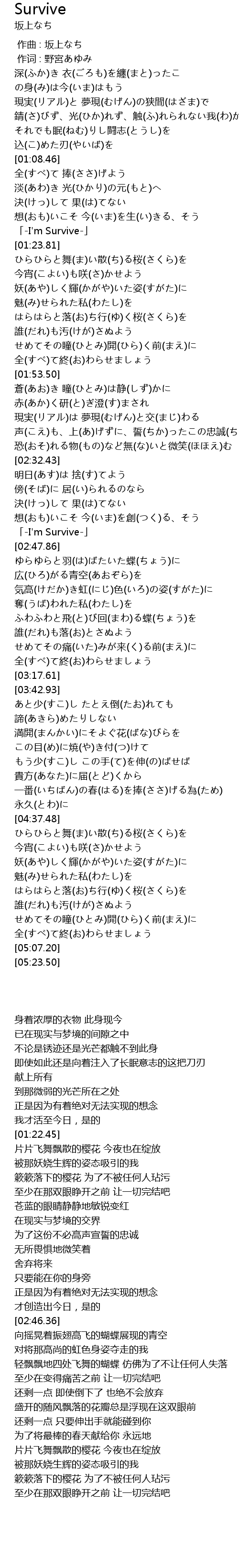 | [04:37.80] | ひらひらと舞(ま)い散(ち)る桜(さくら)を 今宵(こよい)も咲(さ)かせよう |
