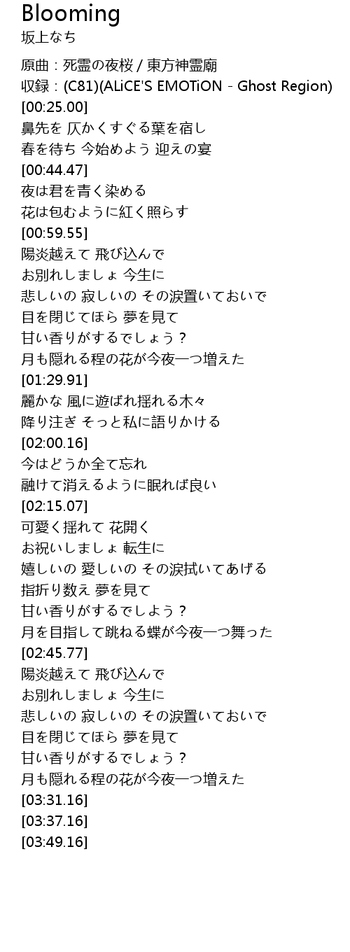 | [00:05.00] | 原曲:死霊の夜桜/東方神霊廟 |