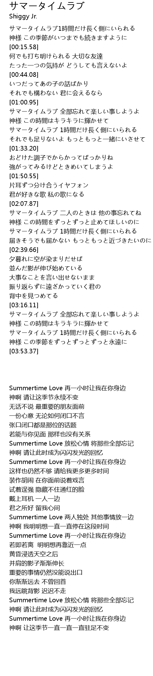 | [03:19.71] | サマータイムラブ 全部忘れて楽しい事しようよ |