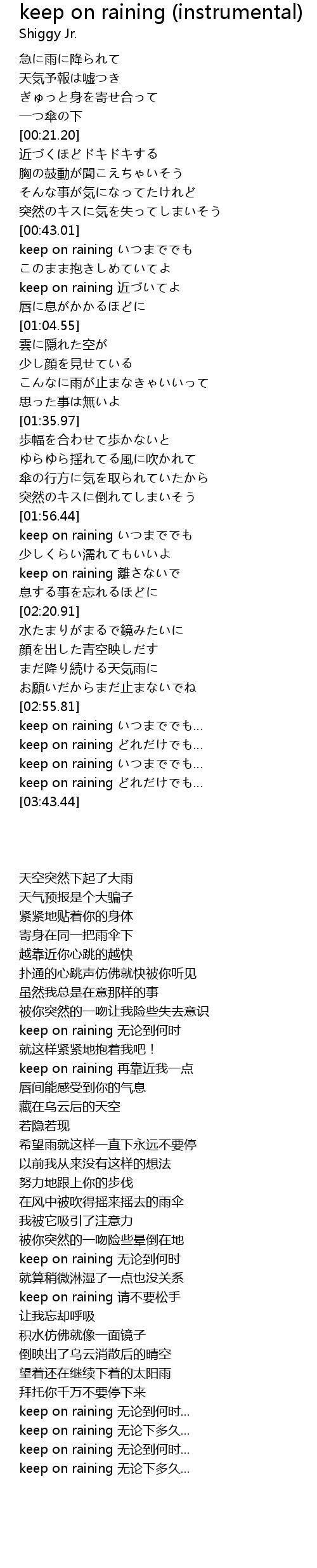 | [02:02.42] | 少しくらい濡れてもいいよ |