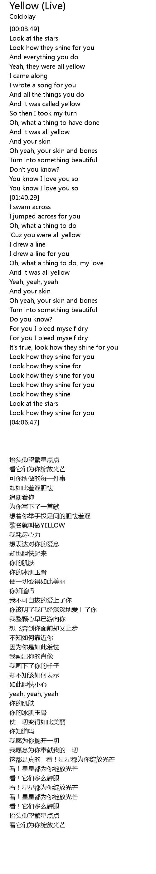 Look how they shine for you |