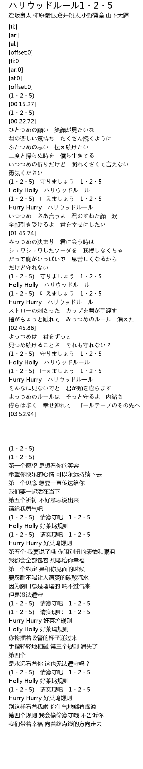 | [02:24.13] | (1・2・5) 叶えましょう 1・2・5 |