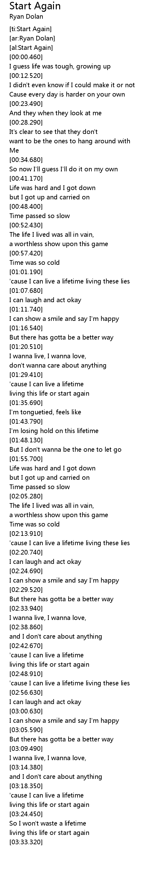 [ti:Start Again] |