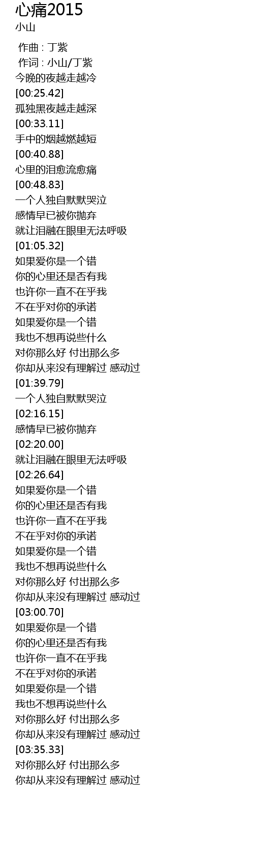 | [00:01.00] | 作词 : 小山/丁紫 |