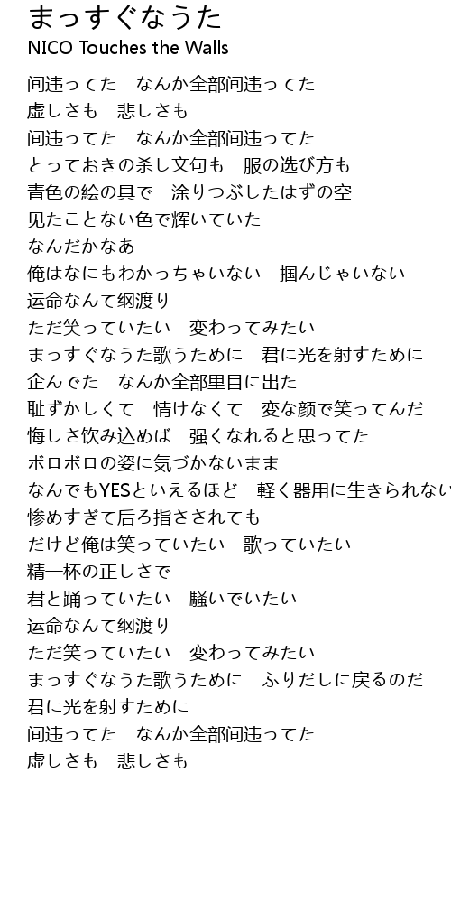 | [02:44.50] | まっすぐなうた歌うために ふりだしに戻るのだ |