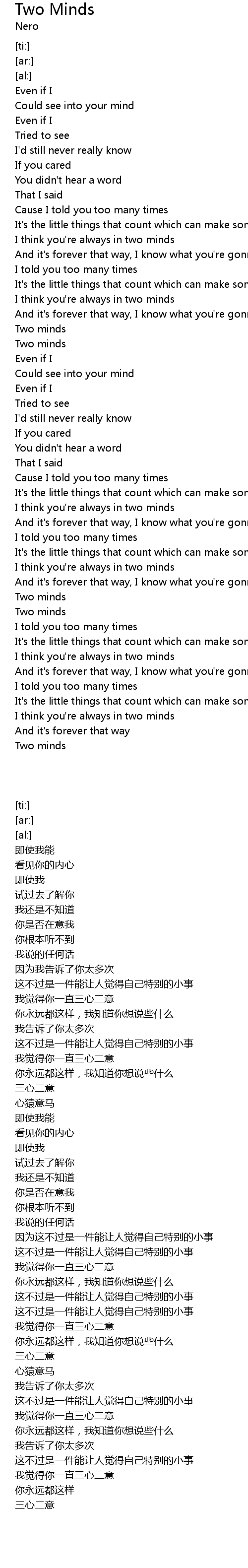 | [02:51.53] | Two minds |