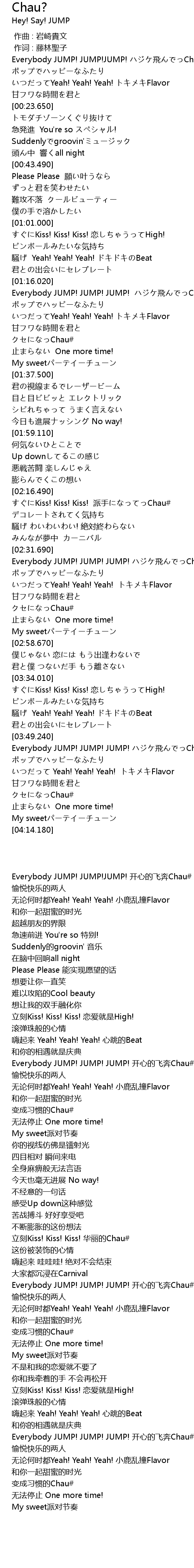 | [02:31.700] | Everybody JUMP! JUMP! JUMP! ハジケ飛んでっChau# |