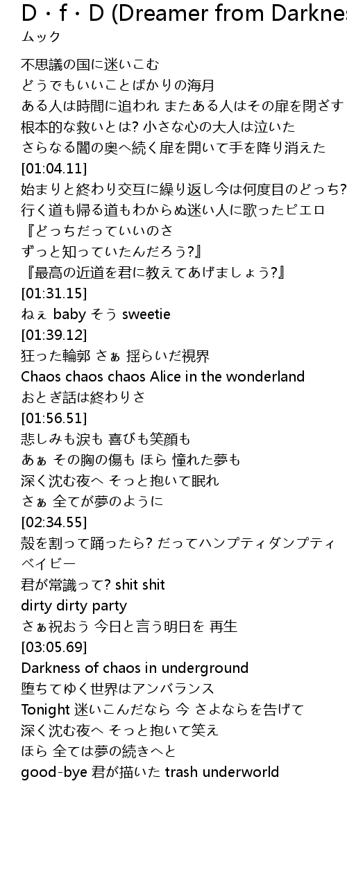 | [01:45.43] | Chaos chaos chaos Alice in the wonderland |