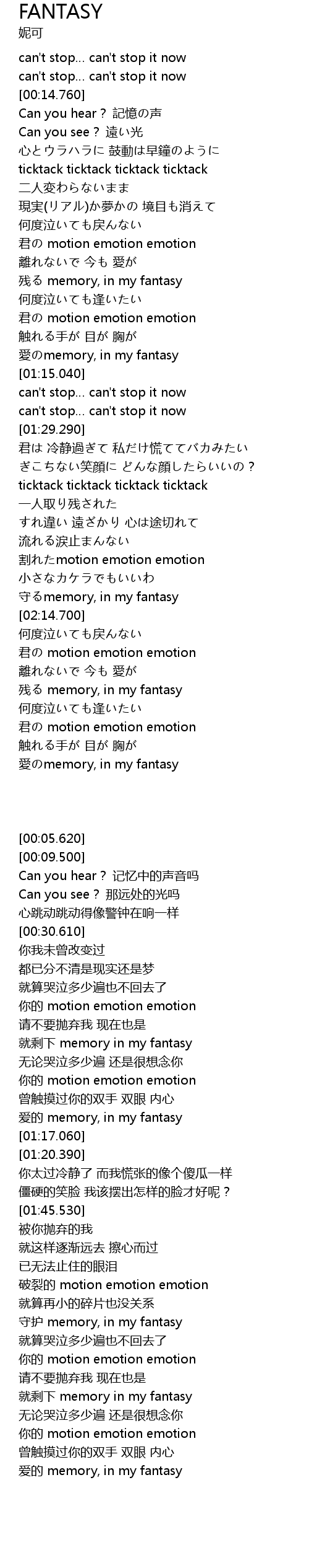 | [02:03.290] | gē motion emotion emotion |