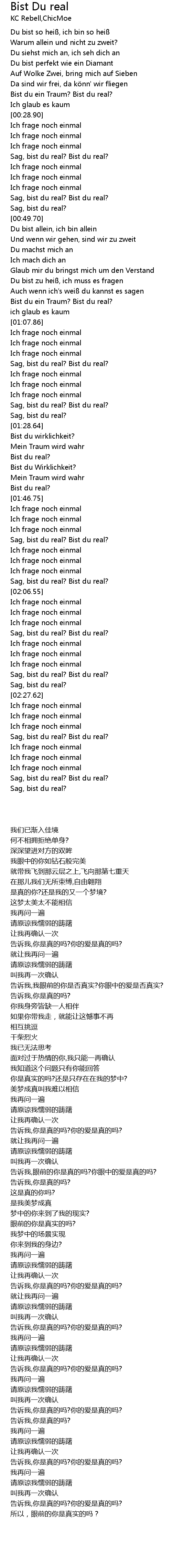 | [00:45.77] | Sag, bist du real? Bist du real? |