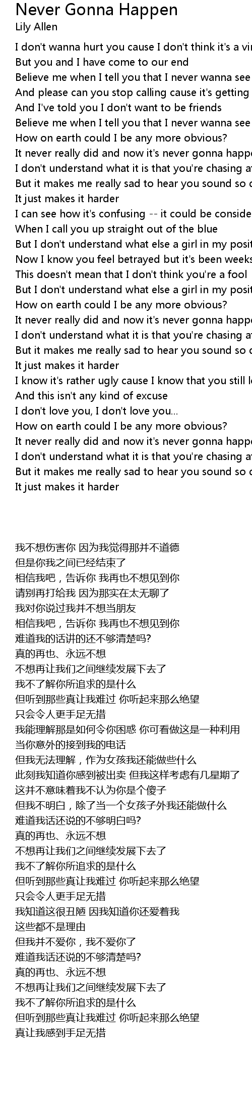 It never really did and now it's never gonna happen with the two of us |