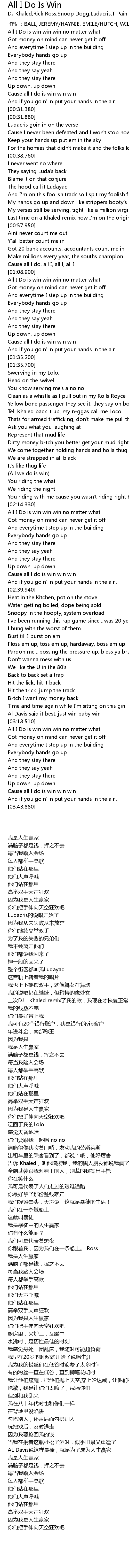 | [01:09.900] | All I Do is win win win no matter what |