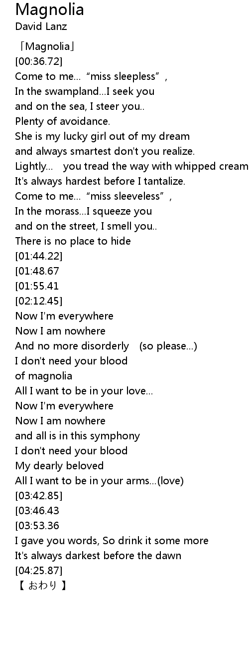 | [00:38.72] | Come to me...“miss sleepless”, |