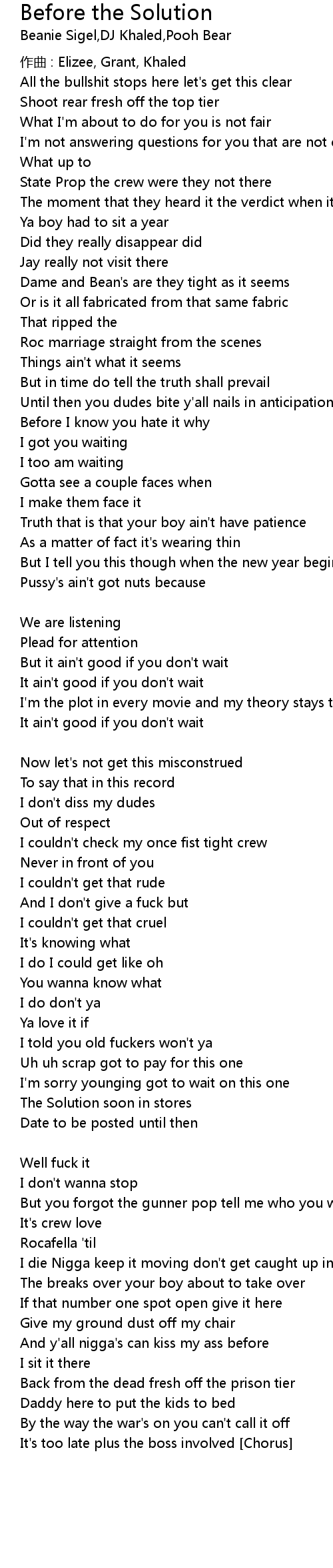 | It ain't good if you don't wait [Beanie Sigel] | |