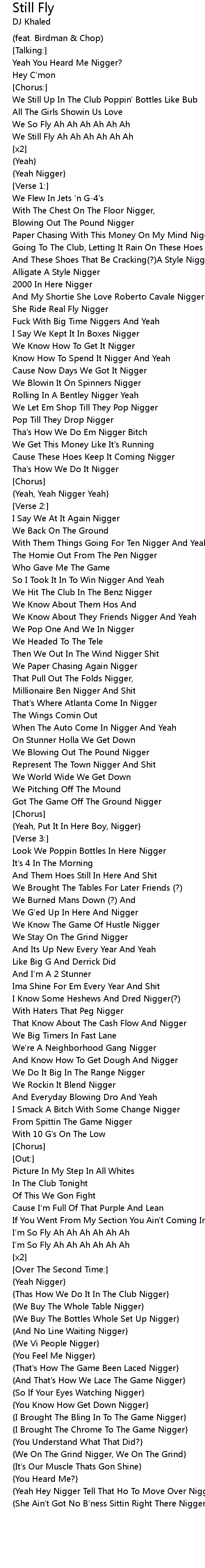 {Yeah Hey Nigger Tell That Ho To Move Over Nigger} |