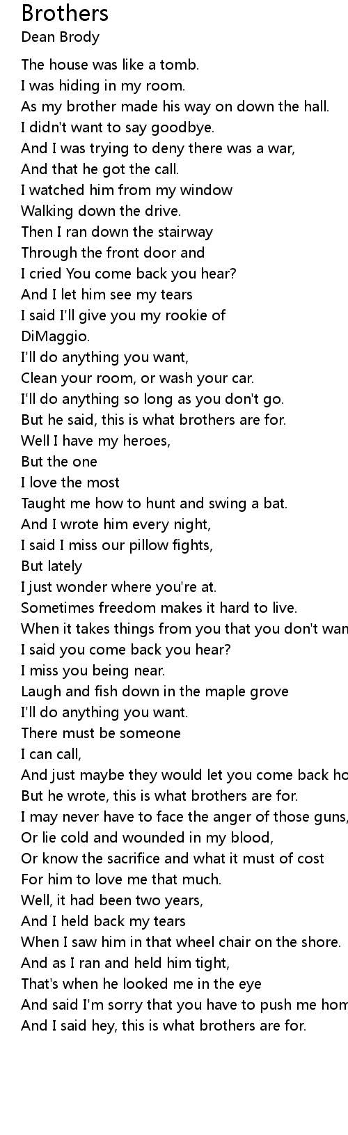 But he wrote, this is what brothers are for. |