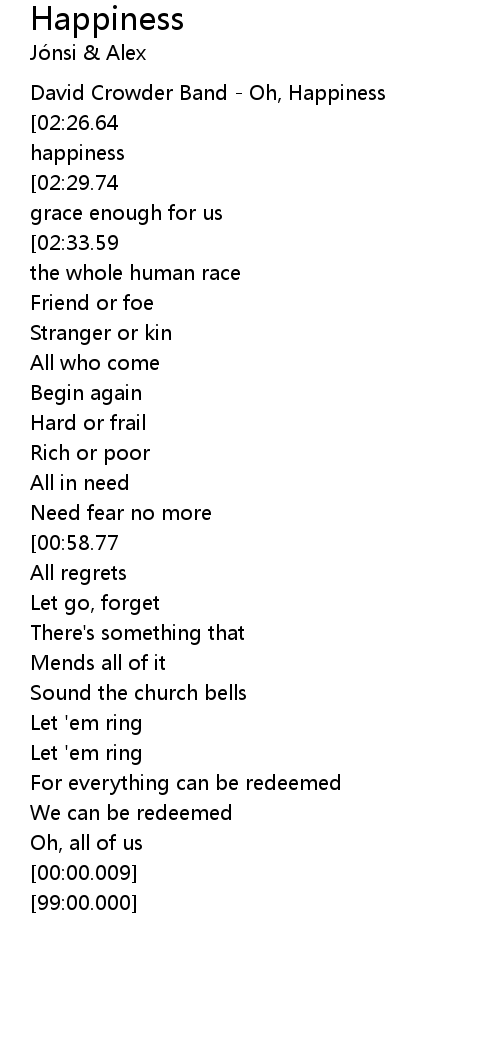| [02:43.16][02:33.59][02:23.93][01:55.04][01:45.36][01:20.07][01:10.40][00:35.43][00:25.79] |