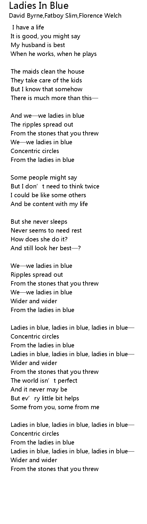 | Ladies in blue, ladies in blue, ladies in blue | |